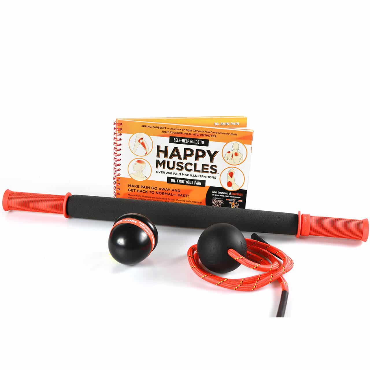 The Happy Muscles Kit plus 22″ includes 4 amazing tools to massage your body from head to toe, help relieve sore muscles, soothe stress and tension, and recover. The kit includes The Original™ 22” Foam Roller Stick, Tiger Ball® 2.6 Massage-on-a-Ropes, Knotty Tiger® Pro Handheld Massager, and Happy Muscles® Book.