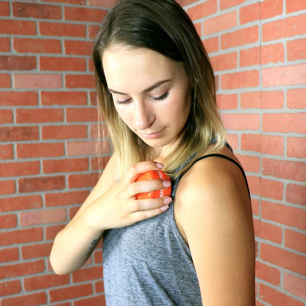 This little Knot Buster® roller ball can help relieve muscle soreness and stiffness. The massage ball rolls on your clothes and skin and it saves your hands and fingers from fatigue. This tool simulates the therapist’s deep tissue elbow massage technique. Massage therapists love adding essential oils to this tool. Small and portable so you can bring it anywhere! Check out our book “Happy Muscles” to help identify muscle knots/trigger points our tools can help with.