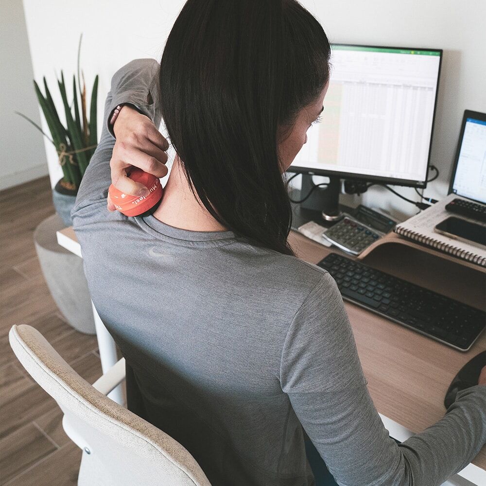 Someone who carries stress and tension in the back and shoulders, and/or suffer from headaches. This is a fantastic buddy massage tool because it saves hands, fingers, and thumbs from fatigue. With the right amount of pressure, it actually can feel like an “elbow” tool – where someone is using their elbow to help dig into some of the tough, tight muscles.