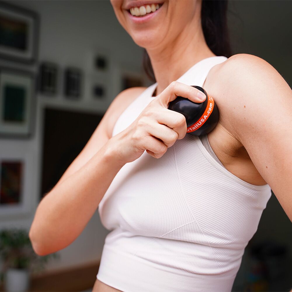 Someone who carries stress and tension in the back and shoulders, and/or suffer from headaches. This is a fantastic deep tissue massage ball tool because it saves hands, fingers, and thumbs from fatigue. With the right amount of pressure, it actually can feel like an “elbow” tool – where someone is using their elbow to help dig into some of the tough, tight muscles.