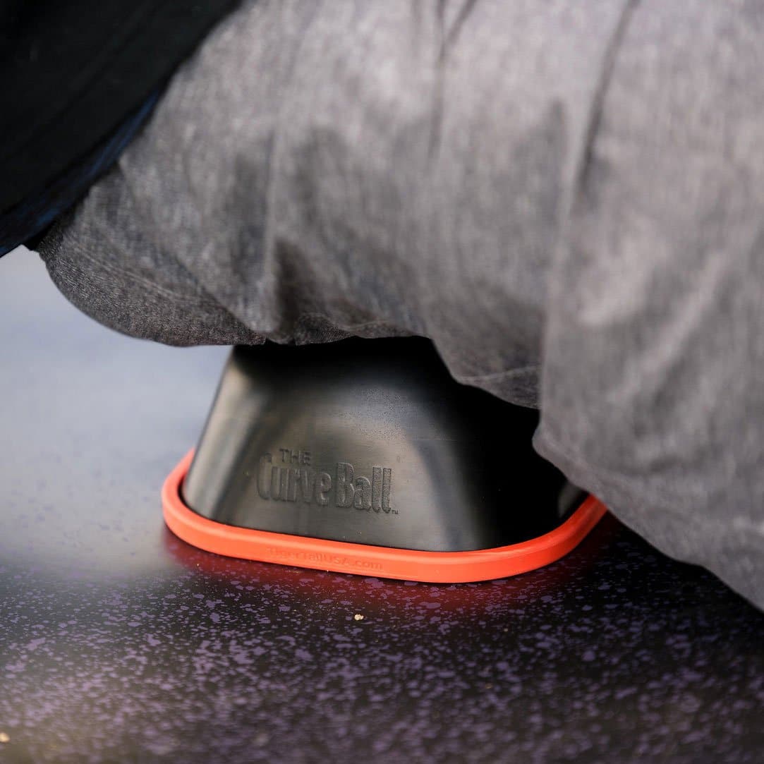 The Curve Ball is a stationary foam roller great at deep tissue muscle massage. This patent-pending inventive tool offers stable and controlled deep muscle massage. The orange, flat base is grippy, which means it won’t slide around. It stays in one place allowing for sustained traction on the muscle. Curved massage surface provides targeted muscle care and relief of minor muscle aches and soreness. Perfect for hips, glutes, back, shoulders, psoas, and more. Use your weight as leverage and let the tool do the work. Use on the floor, chair, bed, or wall. Approximately 4″ round massage surface.