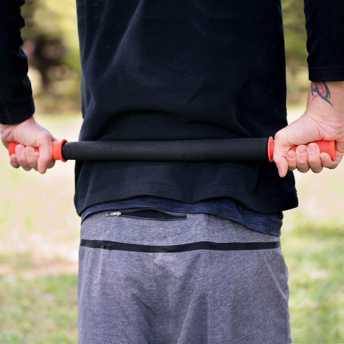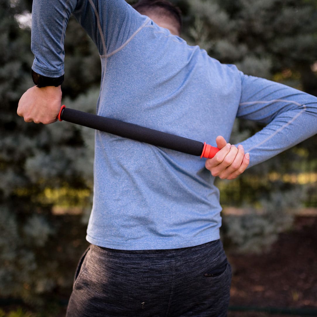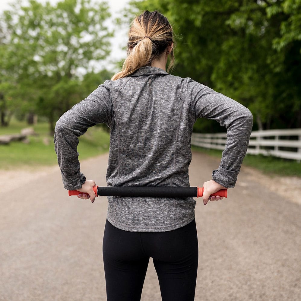 Tiger Tail Original 22″ Portable Foam Roller Massage Stick. Our longest portable foam roller is perfect for back massage or massaging your buddy. Great for those who are tall, have broad shoulders, are less flexible, have limited mobility, or want to focus on back massage. The 22″ works great for both upper and lower body work. Massages and works out muscle knots in all muscle groups including neck, shoulders, arms, upper back, lower back, hamstrings, glutes, quads. Shoulder massages feel best with a buddy helping you. Easy to use at work, use after exercise, travel with or put in a back pack. Cushioned foam center spins. 22” long. 14” massage surface. (Each handle is 4″ long.)
