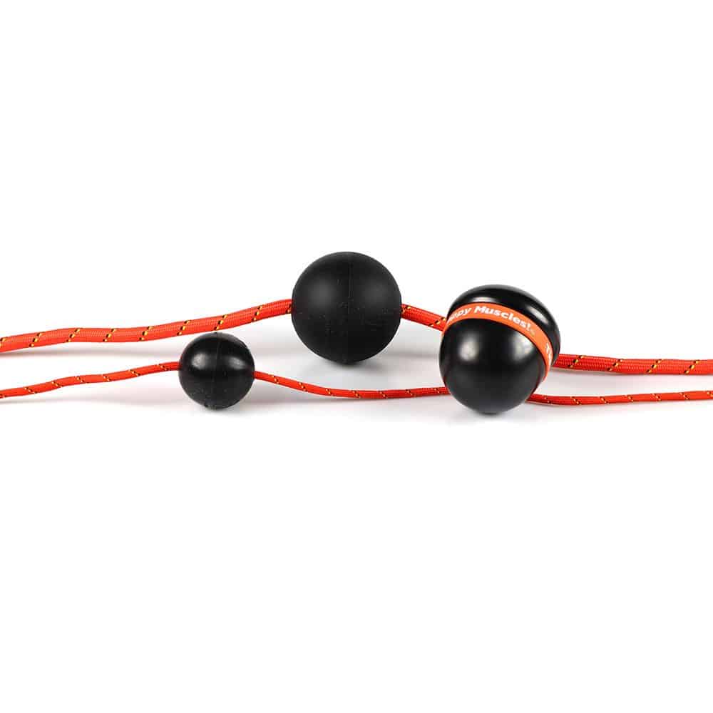 The Tiger Ball® 2.6 Massage-on-a-Rope is excellent for reaching muscle knots in your back, shoulders, glutes, piriformis, hips, hamstrings and feet. It easily to “digs” into the muscle knots for deep, targeted muscle knot relief.