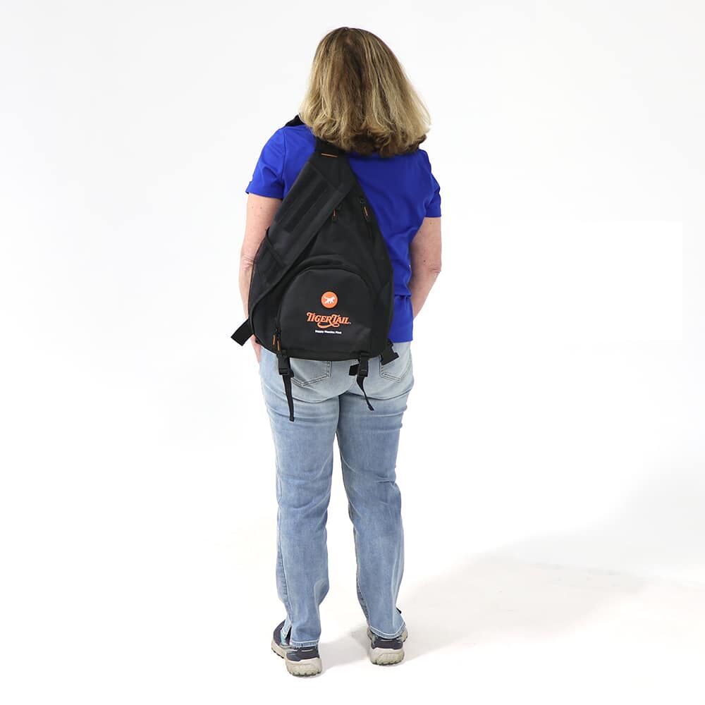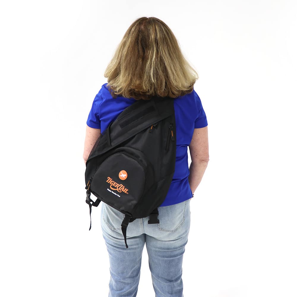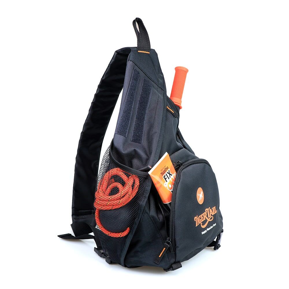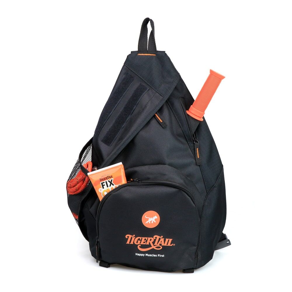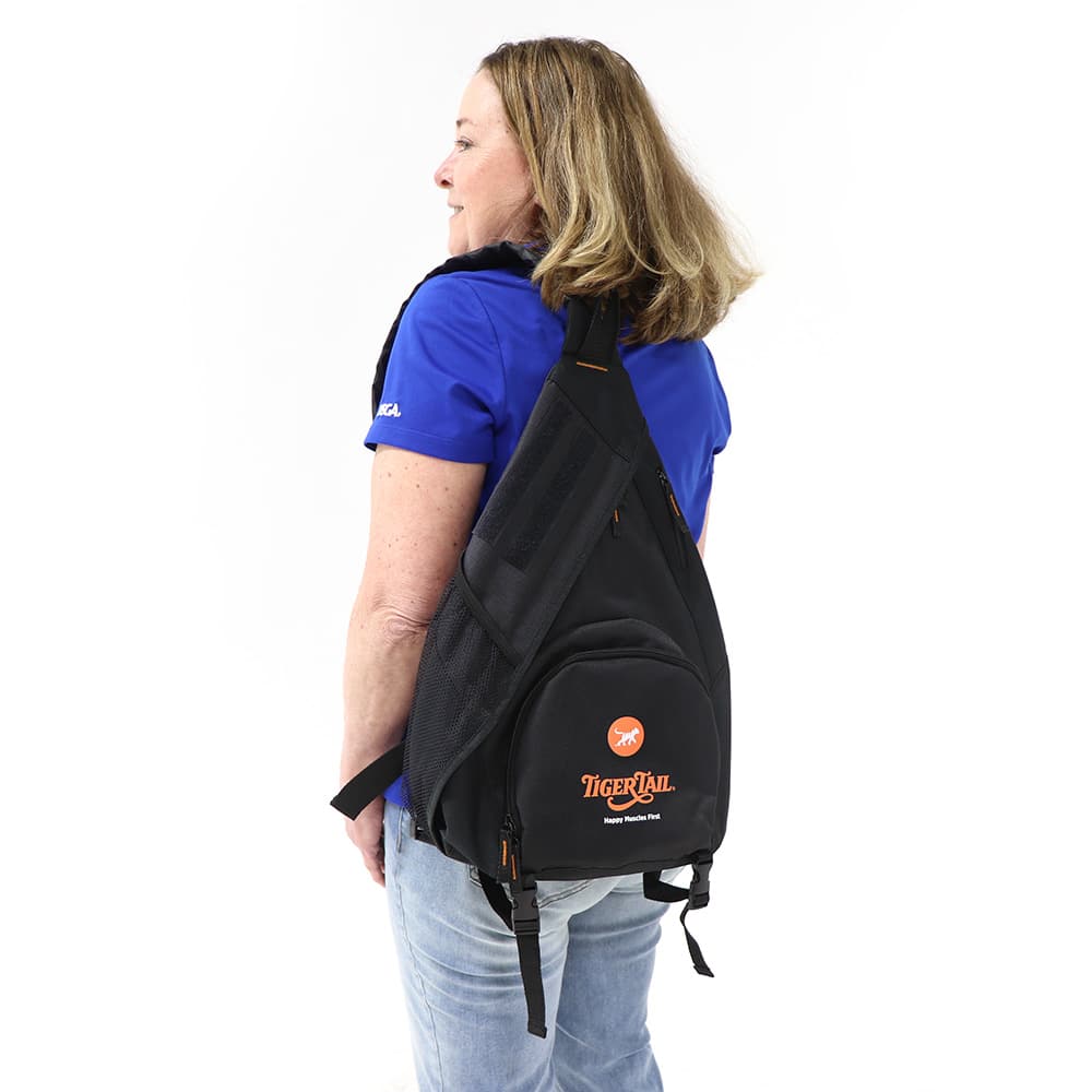 Designed by our Founder, the Tiger Tail Sling Bag is a special shoulder bag to carry your awesome Tiger Tail products! Near the top, the bag features an exclusive zippered pocket opening so that you can easily carry The Original 18” Tiger Tail or the Long One 22” Hand-Held Foam Rollers wherever you may go. The Tiger Tail Sling Bag keeps your tools nice and neat in the bag, and the special pocket keeps your favorite tool super accessible for quick, easy, no-hassle use. This can be especially important on a city adventure, hike, or on the sidelines at a game.